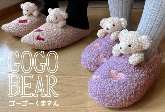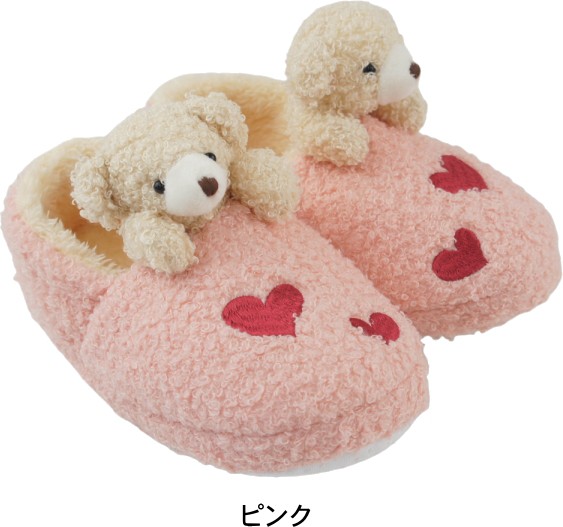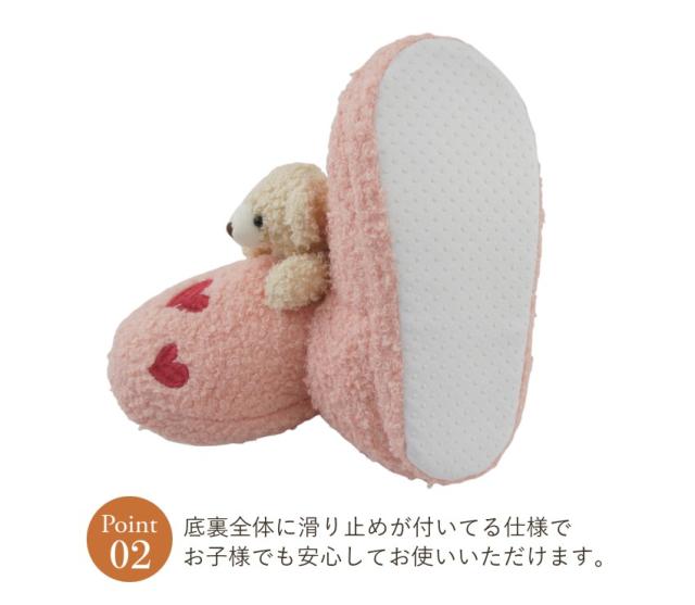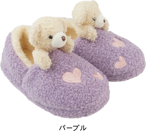クマ スリッパ ルームシューズ アニマル ゴーゴーくまさん キッズ 女の子 子供 くま ぬいぐるみ かわいい あったか もこもこ 室内履き 部屋履き ラブリー ハート ピンク パープル dyasa42063