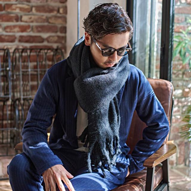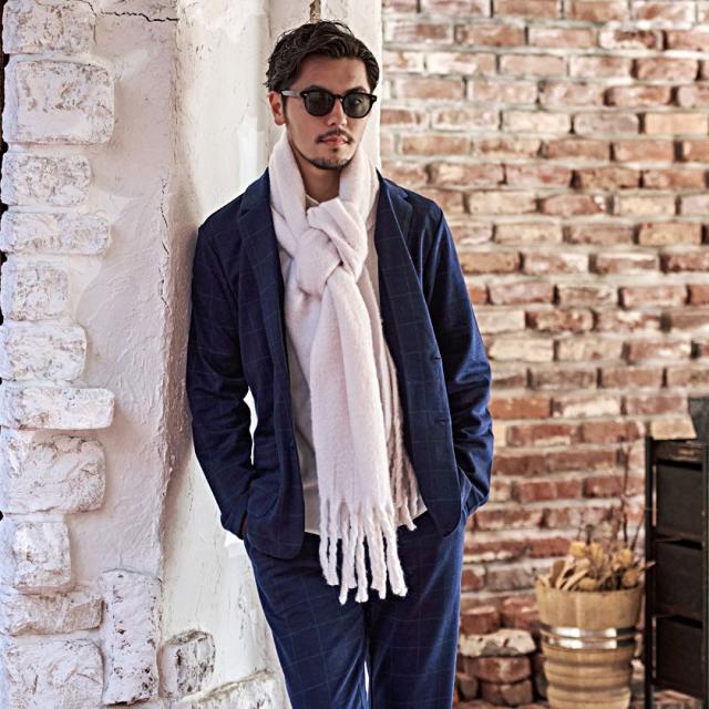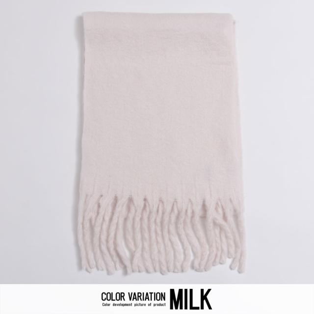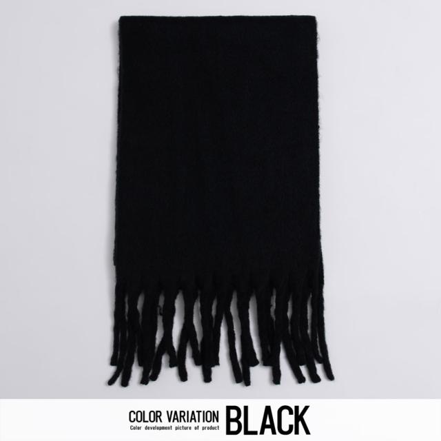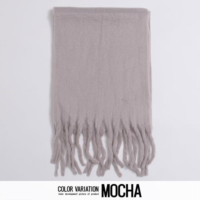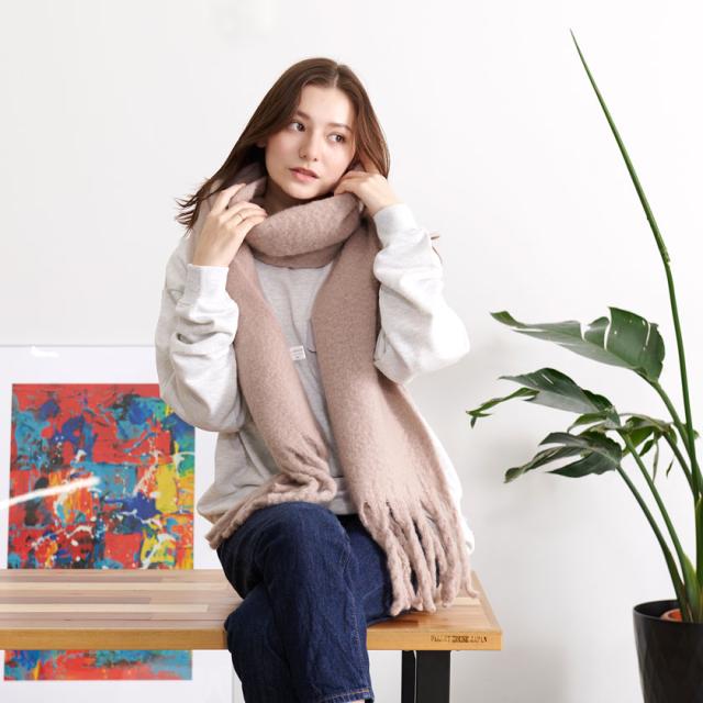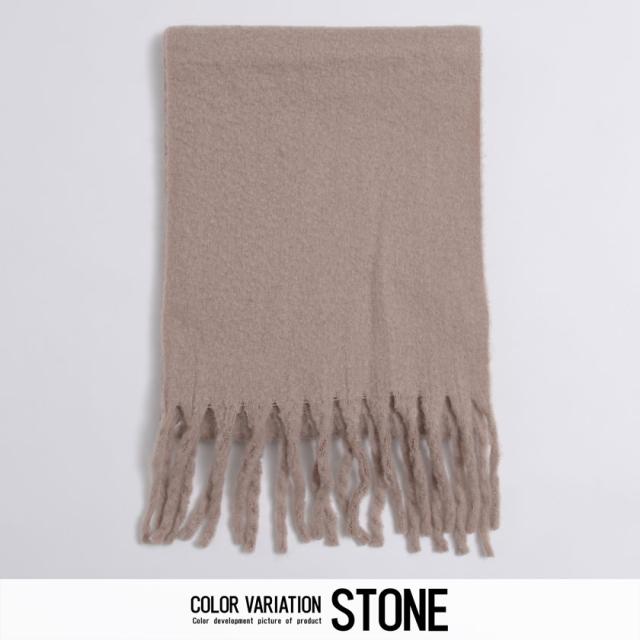 ウールライク起毛素材の肉厚なフリンジマフラーです。