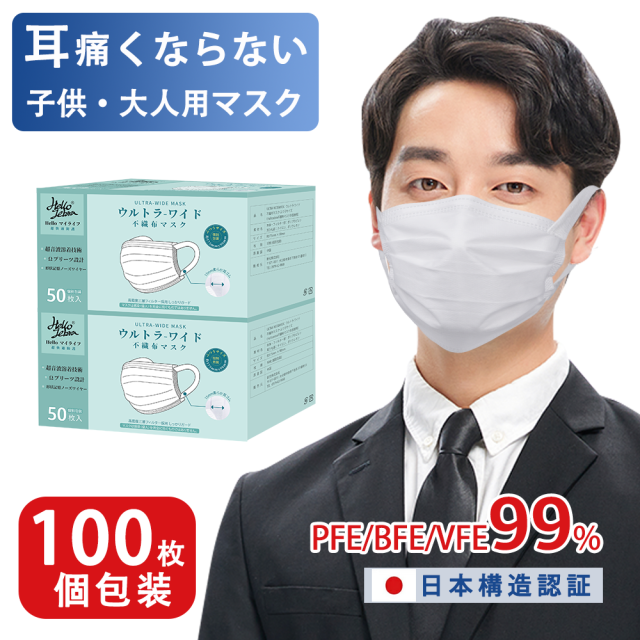 - マスク包装個耳が痛くならない100枚箱