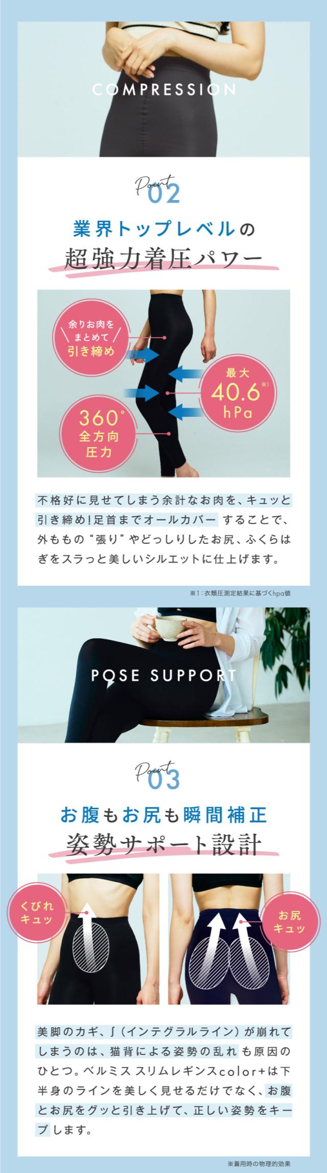 【お腹もお尻も瞬間補正?】美脚のカギ、インテグラルラインが崩れてしまうのは、猫背による姿勢の乱れも原因のひとつ。ベルミス カラープラスは、下半身のラインを美しく見せるだけでなく、お腹とお尻をグッと引き上げて正しい姿勢をキープします。