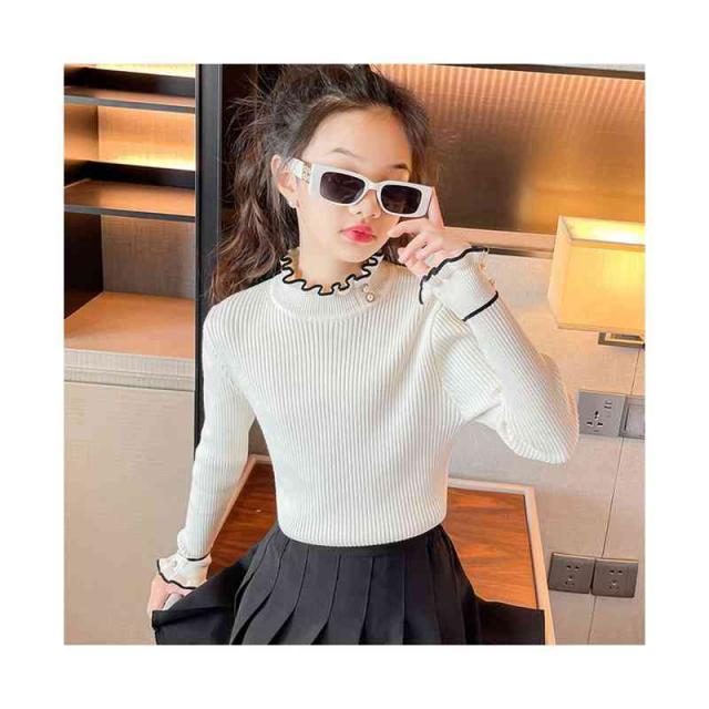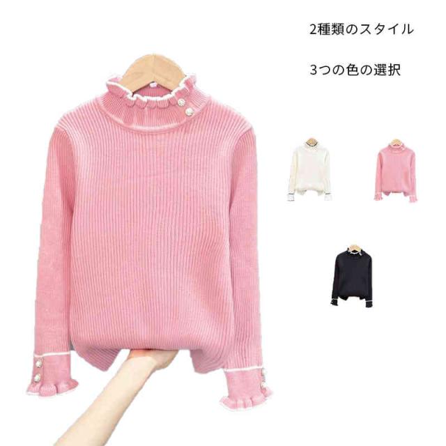 フリルブラウス キッズ 秋冬 インナーブラウス フリル おしゃれブラウス カジュアルブラウス ニットブラウス 無地 シンプル カジュアル プルオーバー おしゃれ 送料無料 インナーウエア おしゃれ おでかけ インナーウエア 女の子 子供服