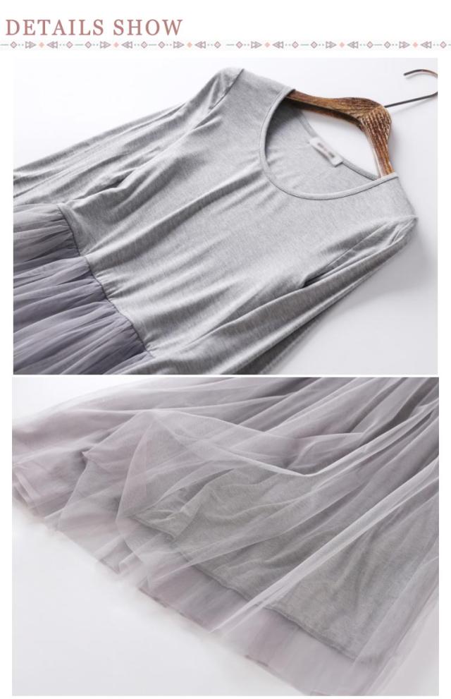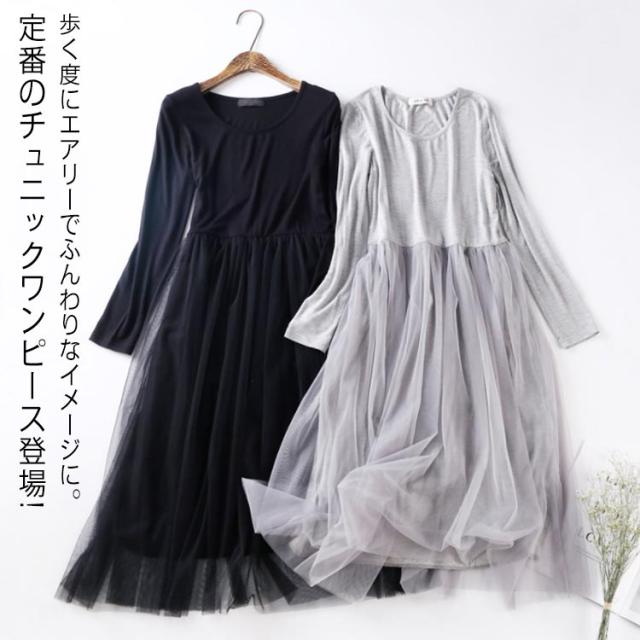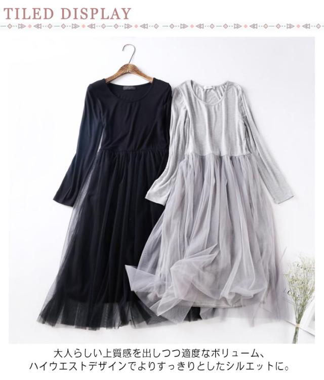 ワンピース 長袖 ロングワンピース レディース ロング丈 マキシワンピ マキシ丈 チュール レース 大人 可愛い カジュアル レイヤード 重ね着 部屋着 インナー ルームウェア 黒 グレー 春 秋 冬 ペチワンピース 可愛い 体型カバー 着痩せ 送料無料