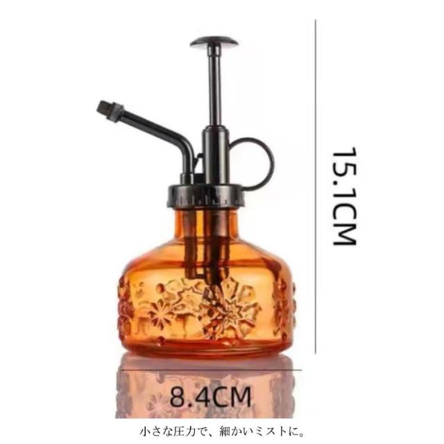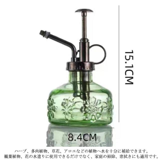 | 安全な材料:ガラス瓶+プラスチックノズル、小さくて便利な霧吹きがあなたの家を飾ることができます。 ハンドプレッシャースプレー缶:小さな圧力で、細かいミストに。 レトロなデザイン:アンティークなスタイルの霧吹きは可愛くて魅力的で、生活空間を美しく彩ります。 多機能:ハーブ、多肉植物、草花、アロエなどの植物へ水を十分に補給できます。観葉植物、花の水遣りに使用できるだけでなく、家庭の掃除、窓拭きにも適用です。 良い贈り物:じょうろを友達や家族への贈り物としても最適です。 | |