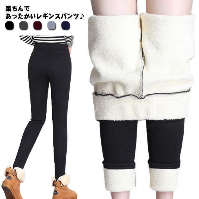 裏ボア レギンス パンツ レディース 厚手 裏起毛 厚い スキニーパンツ ハイウエスト 綿 長ズボン ボトムス 防寒 あったか 暖かい 全5色 無地 黒 ブラック グレー 大きいサイズ レギパン ネイビー レギンスパンツ 10分丈 伸縮 送料無料