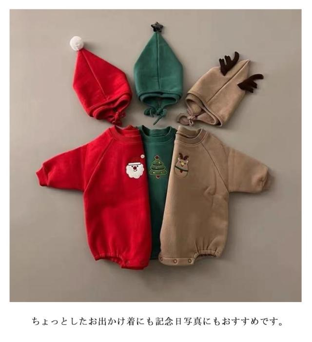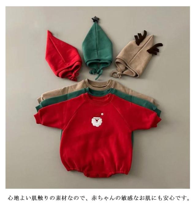 2点セット コスプレ ロンパース 帽子付き 着ぐるみ クリスマス衣装 トレーナー ベビー服 カバーオール サンタさん トナカイ 赤ちゃん 男の子 女の子 サンタクロース 記念写真 プレゼント 誕生日 出産祝い 送料無料