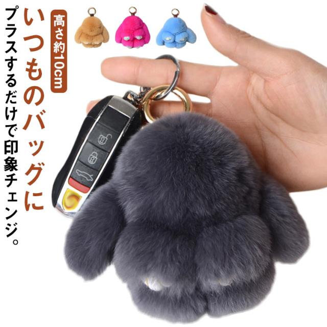 【送料無料】ファーチャーム 全20色 キーチェーン バッグチャーム うさぎ もこもこ ふわふわ リアル ファー チャーム 兎 可愛い カラーバリエーション ペンダント アクセサリー 小物 キーホルダー 大人 金具 秋 冬 ラビット ファー