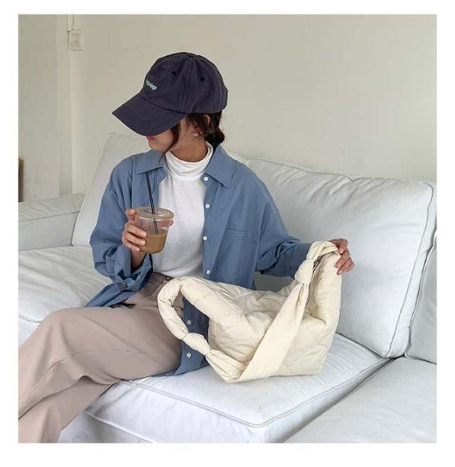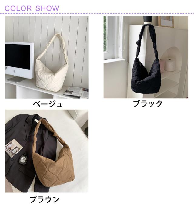 | トレンドのキルティング素材で作られいたミニバッグが登場. くたっと柔らかな生地にパイピングデザインが今っぽい、 肩掛けとしても斜めがけとしても使える 軽くて使い易いバッグ。 必要なものがちょうど入る適度なサイズ感◎ | |