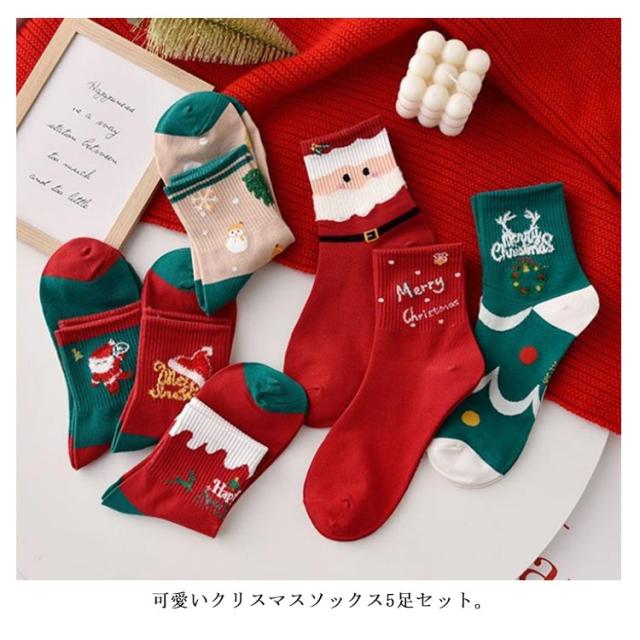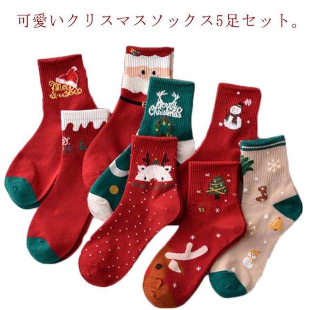 くつ下 ソックス 靴下 5足セット クリスマスソックス 送料無料 クリスマス柄 クリスマス ギフトセット クリスマスプレゼント かわいい 韓国 ギフト セット プレゼント サンタ サンタクロース santa 雪だるま レディース おしゃれ
