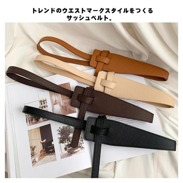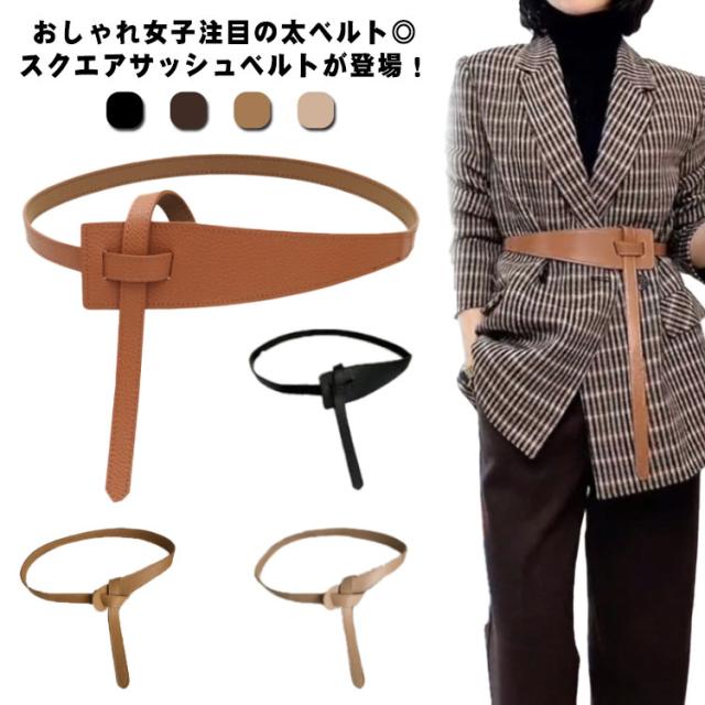 送料無料 サッシュベルト ベルト PUレザー レディース 太 ウエストマーク フェイクレザー 太ベルト 楽ちん おしゃれ かわいい ドレス ベルト 帯締め シンプル トレンド カジュアル きれいめ 大きいサイズ 穴なし 上品 オフィス ファッション小物