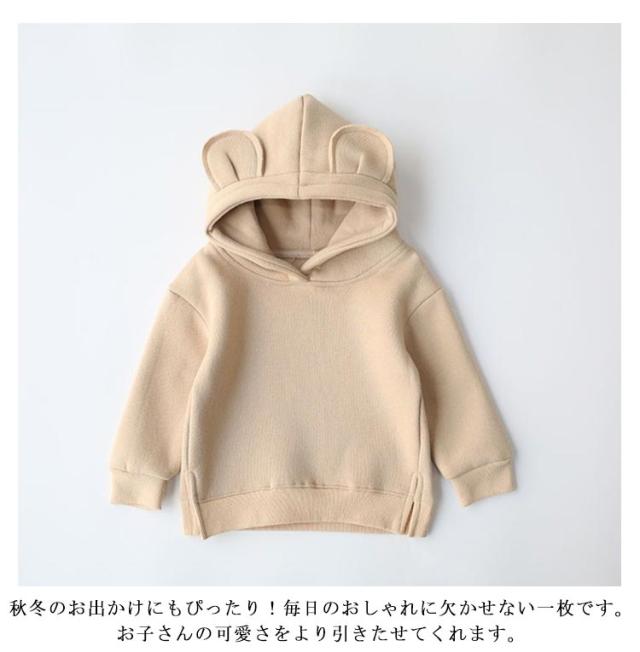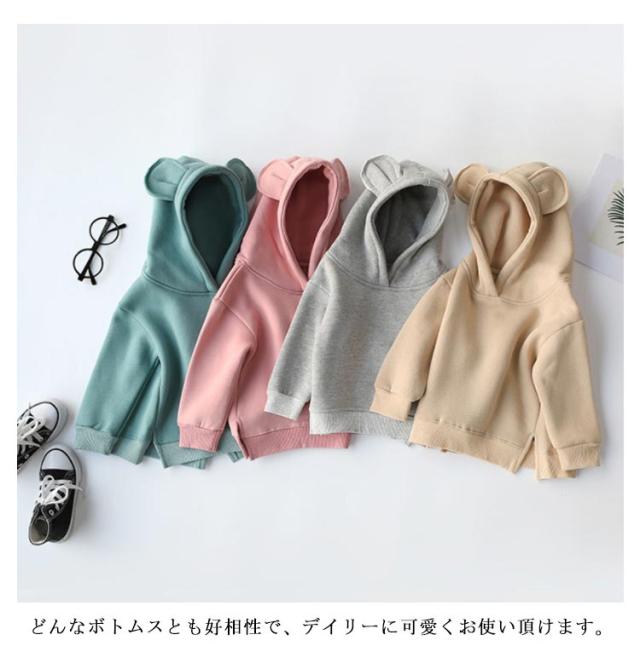 ウサギ耳 キッズ パーカー プルオーバーパーカー アウター うさぎ 長袖 秋冬 子供服 コットン ベビー服 ベビー服 赤ちゃん 男の子 女の子 耳付きフード 無地 通学 通園 幼稚園 80 90 100 110 120 送料無料