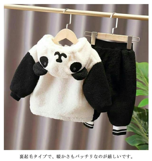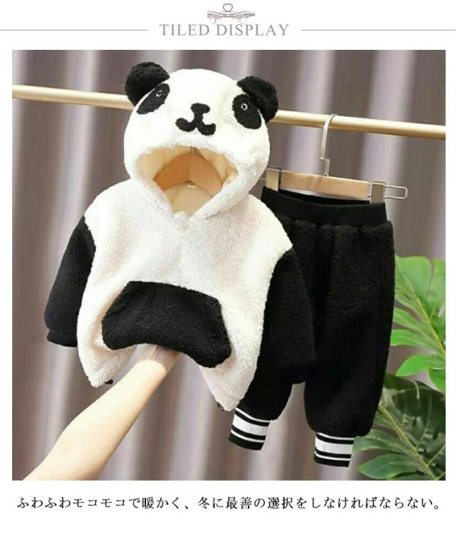 パンダ柄 キッズ パーカー プルオーバーパーカー 上下セット セットアップ アウター 長袖 秋冬 子供服 もこもこ ルームウェア 部屋着 ベビー服 赤ちゃん 男の子 女の子 耳付きフード 無地 通学 通園 幼稚園 73 80 90 100 110 120 送料無料