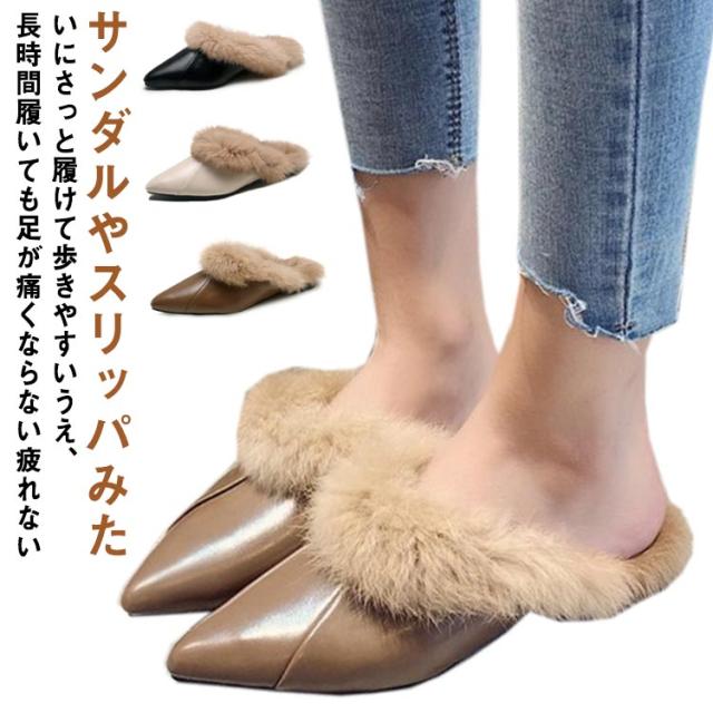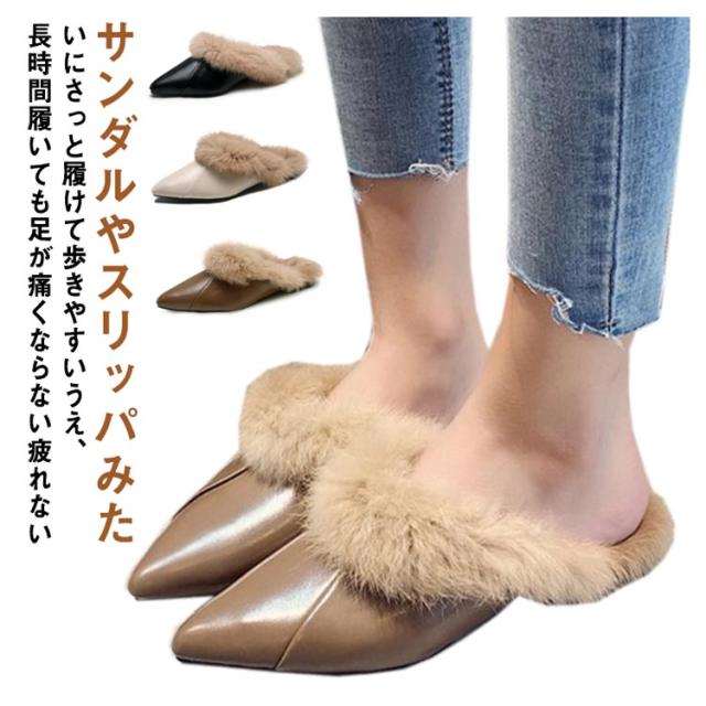 ファーサンダル レディース 靴 シューズ ローファー フェイクファー きれいめ ローヒール スリッポン ファー付スリッポン ローファースリッポン スリッポン もこもこ モコモコ ふわふわ