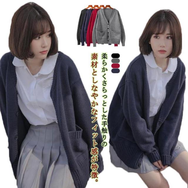 通学 スクールセーター ゆったり レディース レディース 前開き Vネック 制服 レディース ニットコート 森ガール カーディガン トップス スクールカーディガン 春 ニットカーディガン ニットセーター 長袖 大きいサイズ 秋冬 セーター 女子 高校生 羽織り