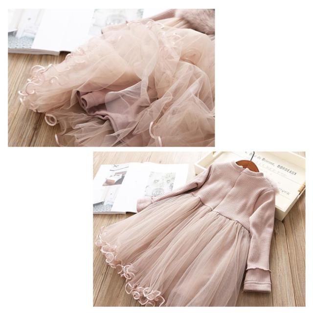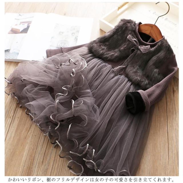 ピンク フォーマル 秋冬 キッズ ドレス 女の子 かわいい 韓国子供服 あったか ワンピース おしゃれ 入学式 ピアノ発表会 演奏会 卒業式 クリスマス リボン フリル チュール 通園 韓国子供服 グレー もこもこ 誕生日 ギフト きれいめ