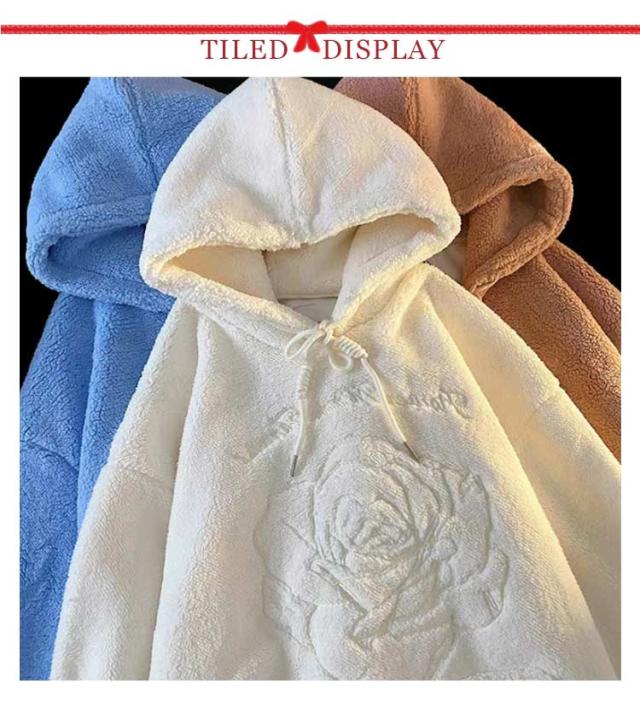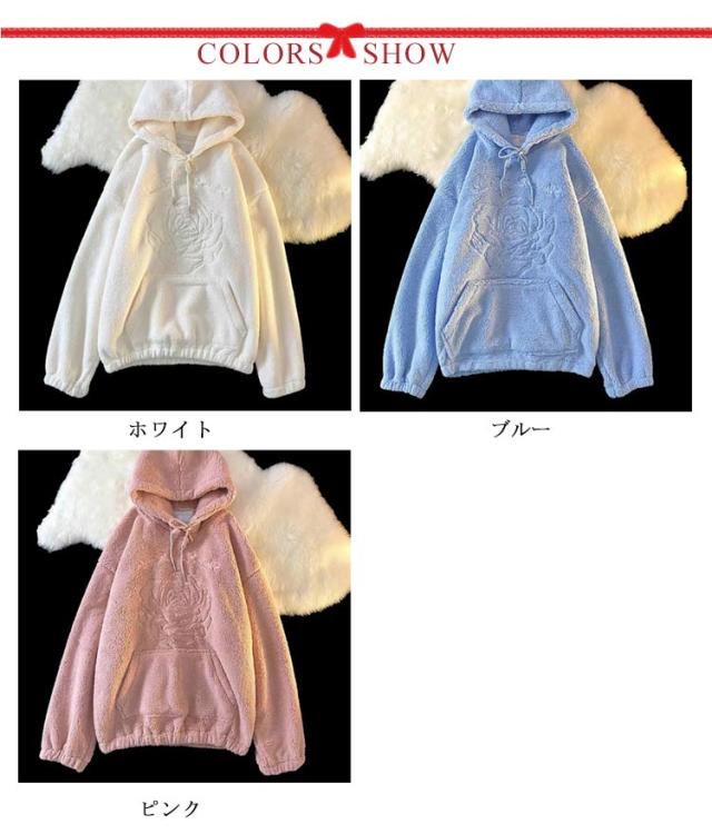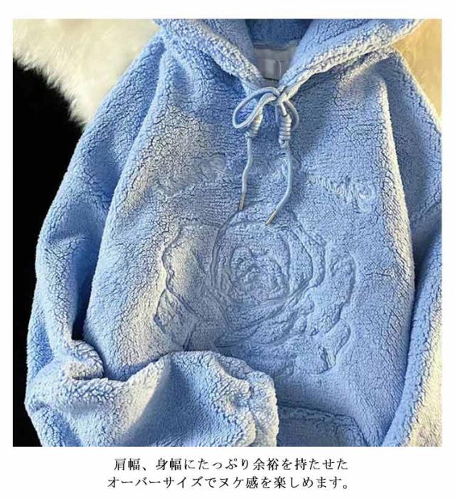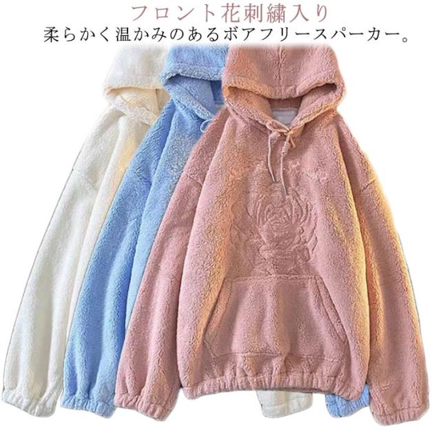 パーカー もこもこ レディース オーバーサイズ 女子 花柄 フーディー ふわふわ ボア 刺? プルオーバー 花刺繍 ゆったり 冬 秋 【送料無料】ボアフリース ボアフリースパーカー 厚手 学生 ボア フリース
