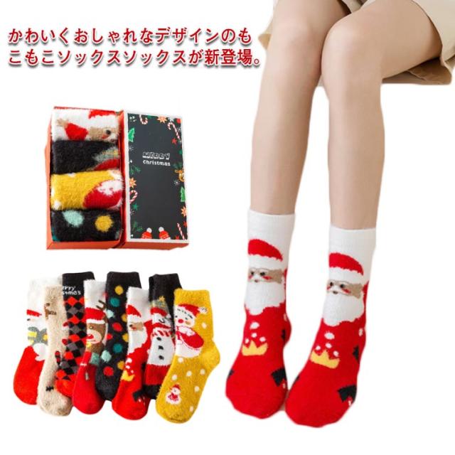 もこもこ モコモコ 【4足組】クリスマス 秋 靴下 可愛い モコモコ 女子高生 暖かい 冬 ソックス かわいい 厚手 冷え性 レディース ルームソックス あったか プレゼント ギフト フェイクファー ふわふわ 防寒
