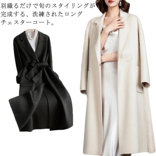 ブラック 黒 ロング丈 ラシャコート トレンチコート 秋冬 コート チェスター 冬物 ジャケット レディース OL チェスターコート ベージュ アウター 大きいサイズ 通勤 OL 上品 おしゃれ 大人 きれいめ スリット ロングコート