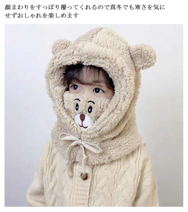 キッズ モコモコ クマ 耳付きフードウォーマー メンズ キッズ 男の子 韓国子供服 女の子 帽子 レディース フェイスガード 防寒 帽子 ネックウォーマー 大人用 耳付きフードウォーマー ジュニア