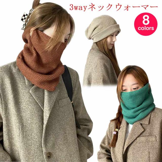 レディース フェイスマスク ネックウォーマー 秋 スヌード 冬 ニット帽子 メンズ ホワイドデー 送料無料 防寒 保温 ネックカバー フェイスガード ニット帽 3way ヘアバンド レディース