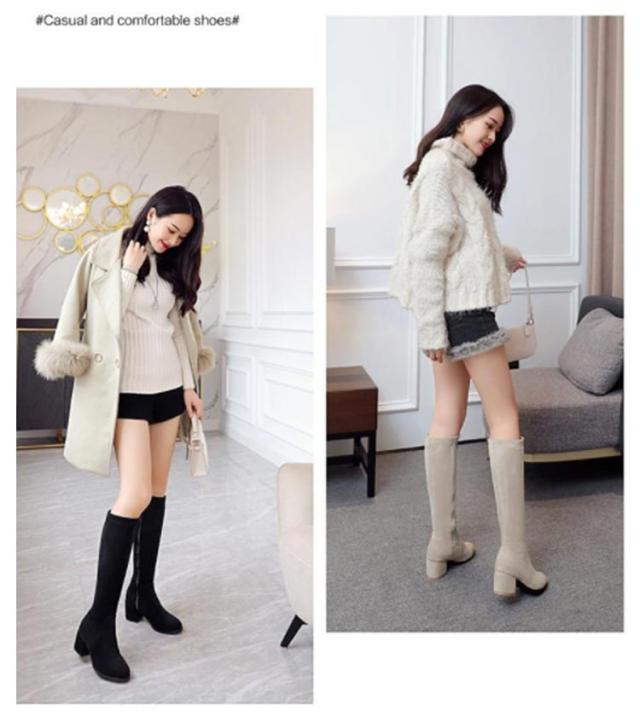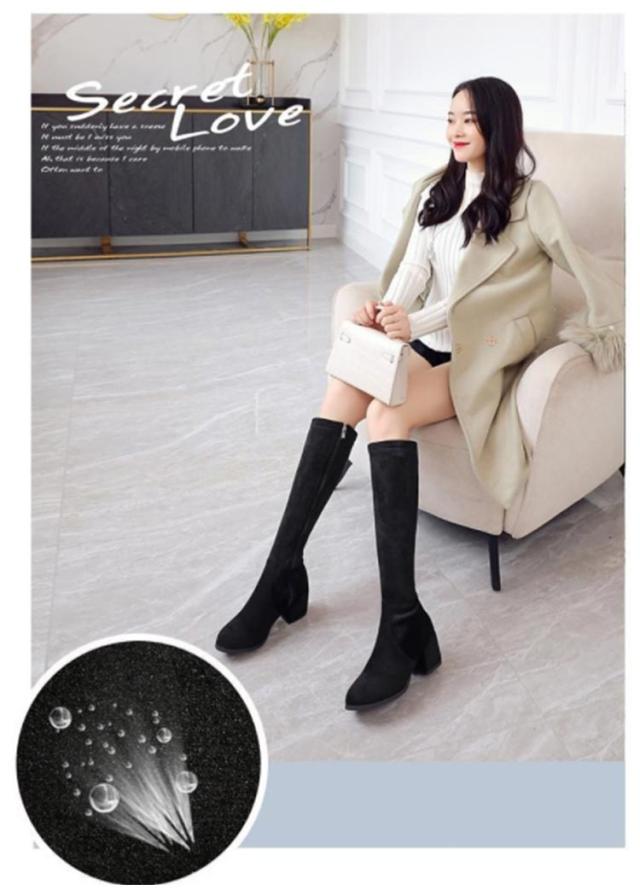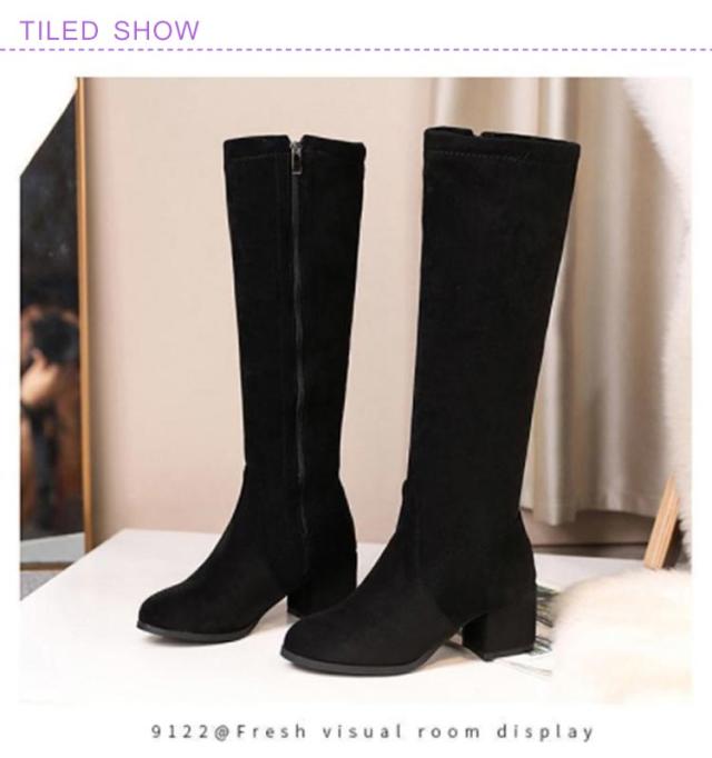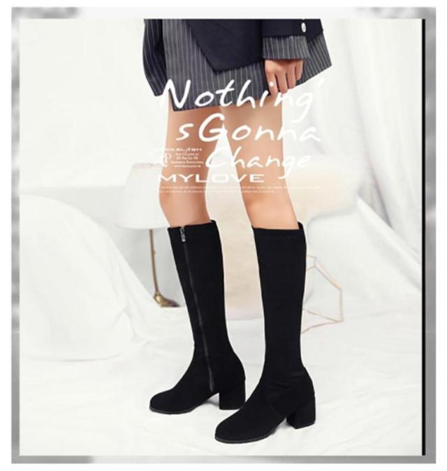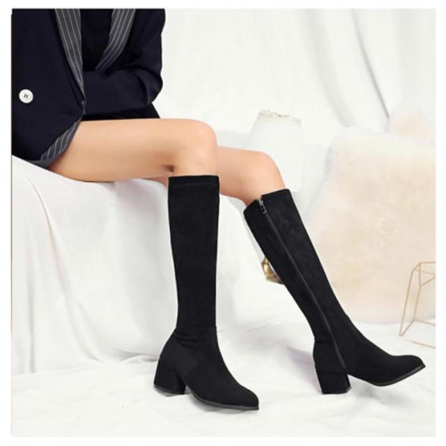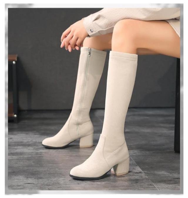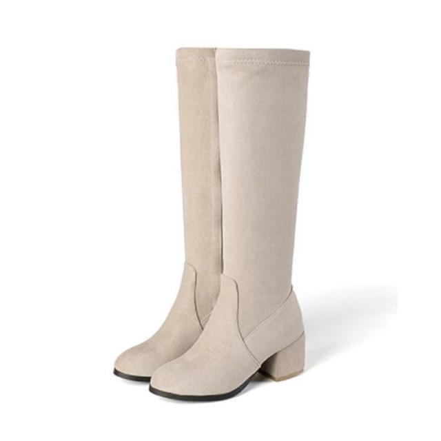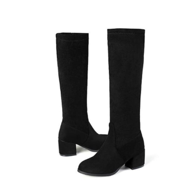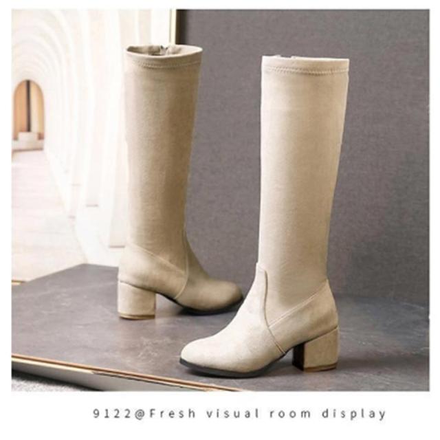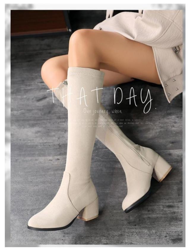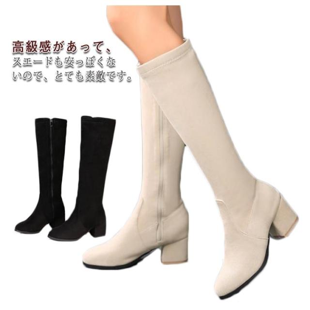 太ヒール サイドジップ 7cm 婦人靴 ロングブーツ チャンキーヒール 黒 身長アップ スクエアトゥ レディース ミドルブーツ ベージュ ブラック 靴 婦人靴 歩きやすい ハイヒール