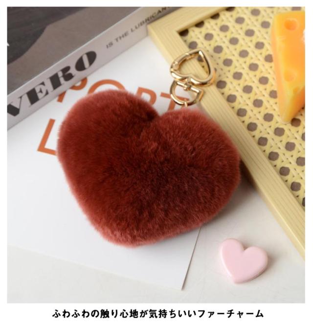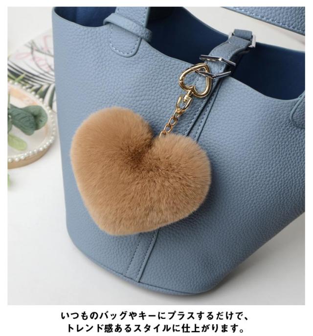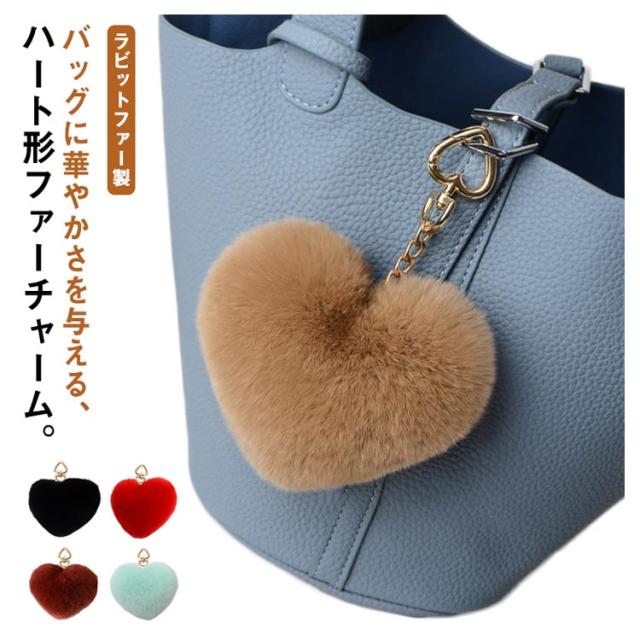 バッグチャーム アクセサリー リアル 可愛い ファー キーチェーン ラビットファー ペンダント もこもこ ふわふわ 秋 大きい 【送料無料】ファーチャーム チャーム バッグ ボリューム 飾り 小物 キーホルダー 大人 金具 ハート形
