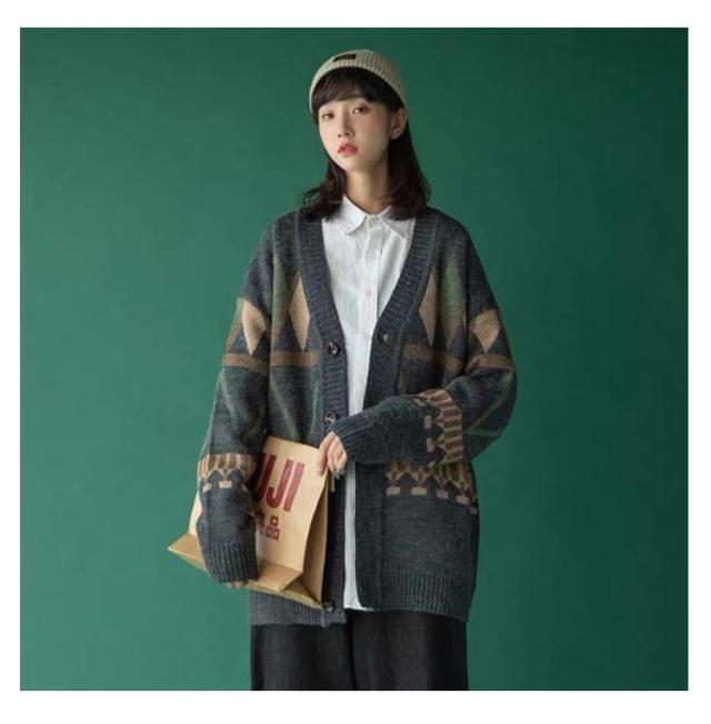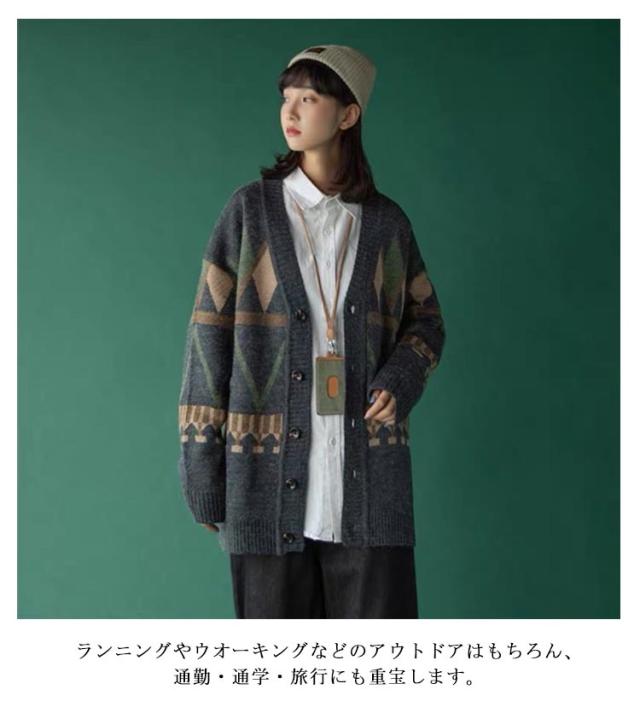 ニットカーディガン ニットカーディガン ロング ユニセックス メンズ ペア カーディガン 秋冬 トップス ニット 長袖 配色 チェック柄 チェック柄