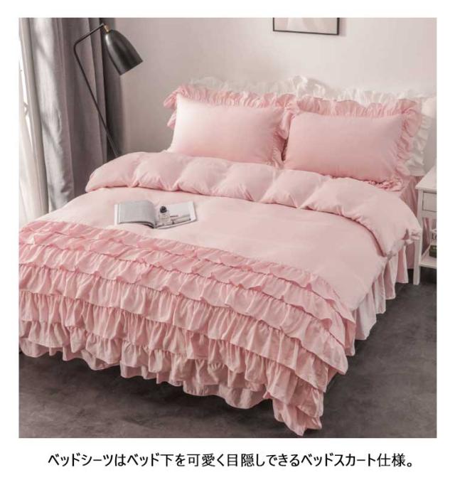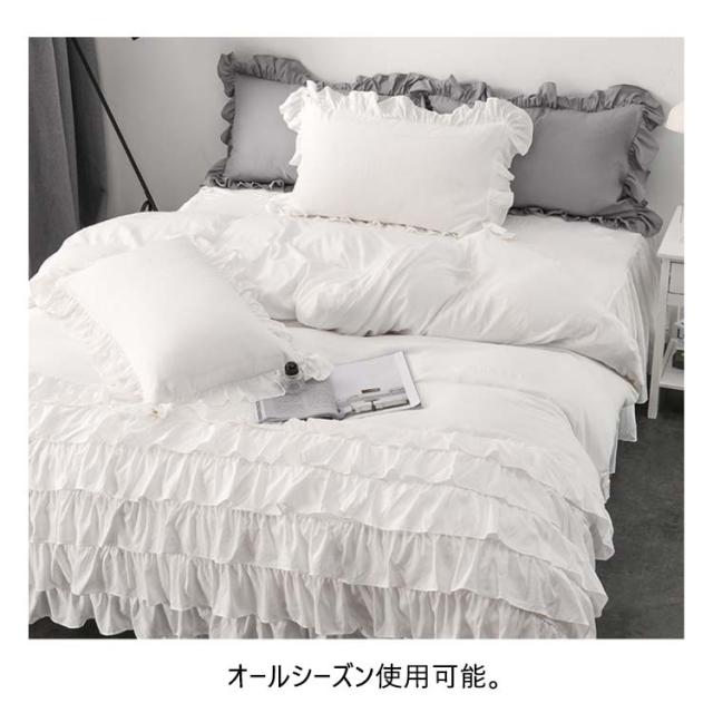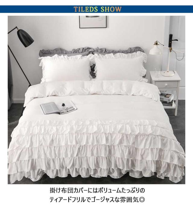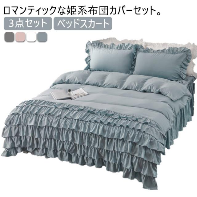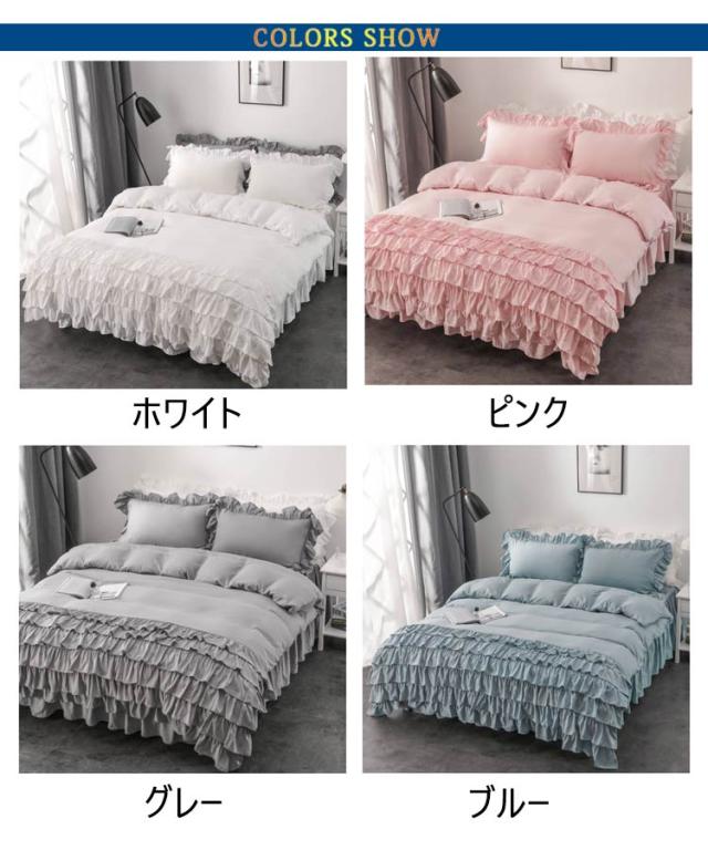 シングル 布団カバー 姫系 寝具 洗える ベッドスカート 掛け布団カバー 枕カバー フリル付き 可愛い 洋式 ホワイト ティアードフリル ロマンティック グレー 無地 ピンク 3点セット