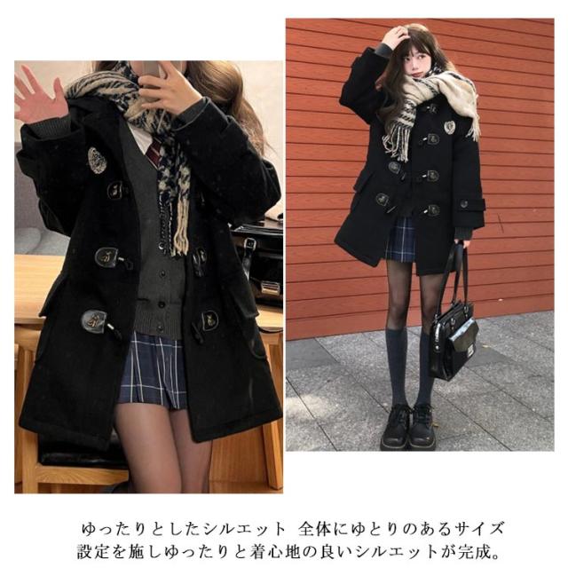 スクールコート ブラック 送料無料 フード付き 女子 制服 アウター コート 送料無料 中綿コート 中綿 厚手 学生 高校生 ダッフルコート 学生 ロングコート かわいい チャコール 中学生 定番 通学 保温 防寒 暖かい 冬