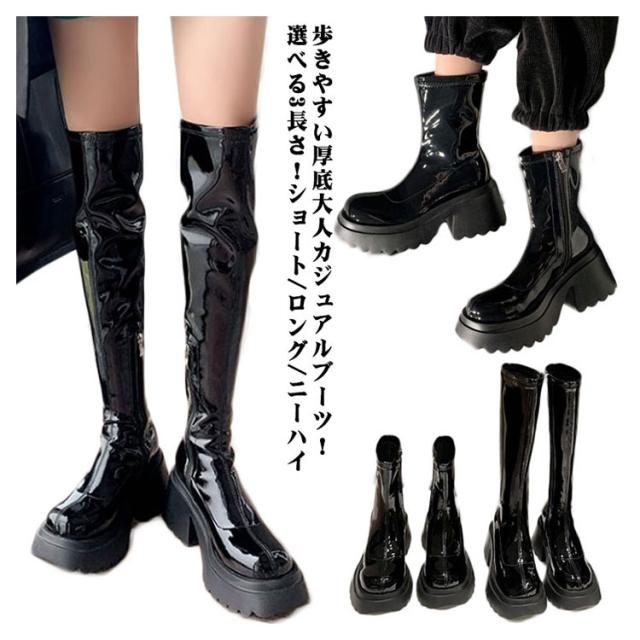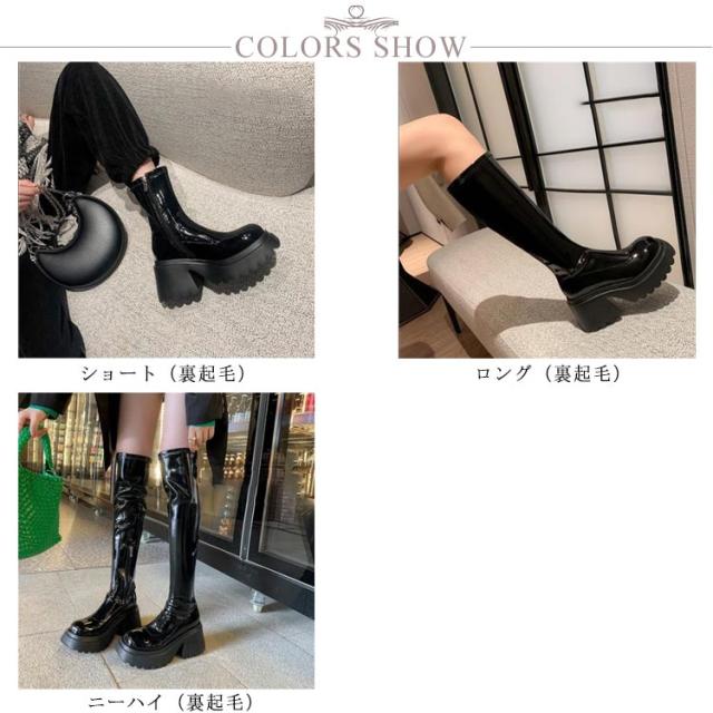ヒール 厚底ブーツ 8cmヒール ロングブーツ 秋冬 靴 ハイヒール ミドルブーツ 裏起毛 黒 防寒 太ヒール ブラック ショートブーツ ショート丈ブーツ 厚底 ロング 歩きやすい ニーハイブーツ ブーツ 厚底ロングブーツ 防寒 防滑 靴 レディース