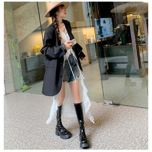 | 歩きやすい厚底大人カジュアルブーツ!選べる3長さ!ショート/ロング/ニーハイ スクエアトゥが女らしいミニマルシックな1足。 ほんのりレトロ感の漂うスクエアトゥは知的で女らしく、すっきりとした足元を演出します。 カジュアルにもエレガントにも履ける大人なシルエットに仕上げました。 細身タイトなスカートとブーツをつないで"Iライン"を強調した女っぽさのあるコーデや、 プリーツスカートと合わせてちょい甘な大人フェミニンスタイルも。 今季トレンドのショートパンツはもちろん相性抜群、デニムとのレイヤードで美脚度UPさせてハンサムコーデも楽しめます。 | |