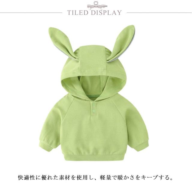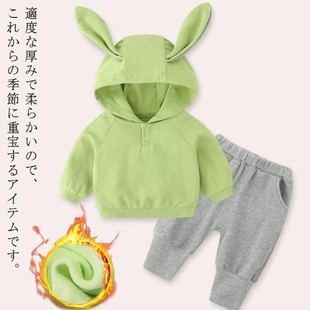 長袖 セットアップ 通園 秋冬 アウター 綿 子供服 うさぎ 上下セット キッズ パーカー ベビー服 コットン ウサギ耳 ベビー服 赤ちゃん 男の子 女の子 プルオーバーパーカー 無地 通学 耳付きフード 幼稚園 80 90 100 110 120