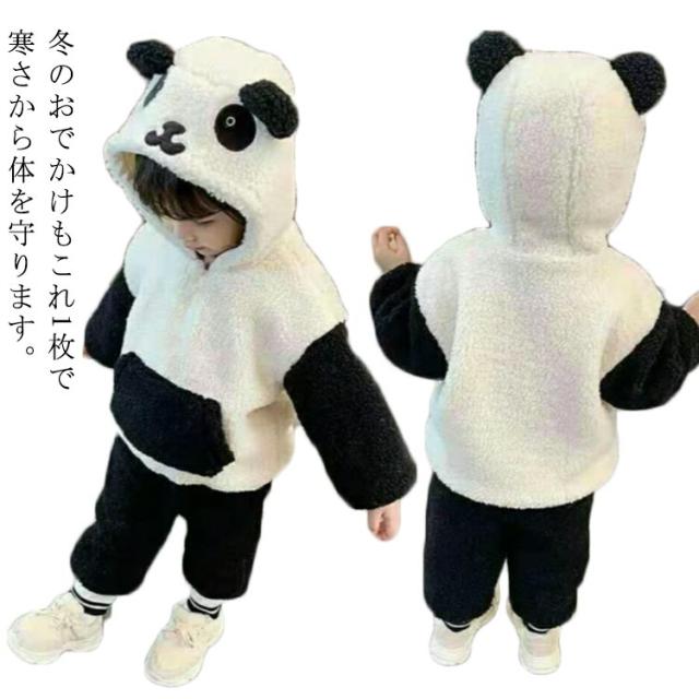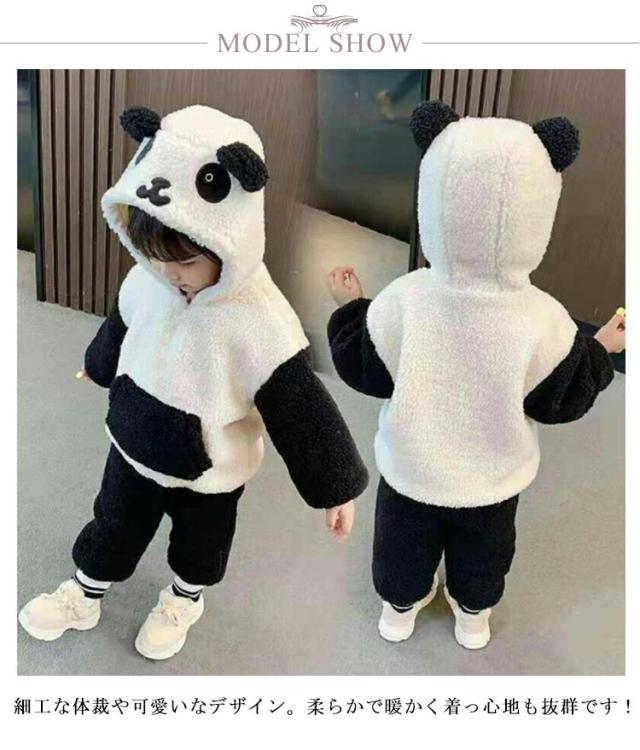 パンダ柄 キッズ パーカー プルオーバーパーカー 上下セット セットアップ アウター 長袖 秋冬 子供服 もこもこ ルームウェア 部屋着 ベビー服 赤ちゃん 男の子 女の子 耳付きフード 無地 通学 通園 幼稚園 73 80 90 100 110 120 送料無料