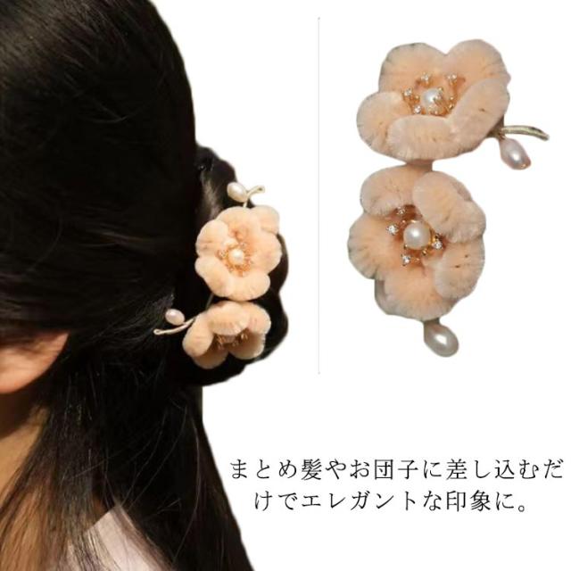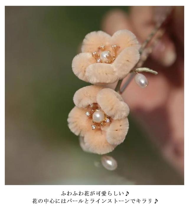 上品 髪飾り 花 起毛 ふわふわ 花嫁 振袖 浴衣 結婚式 ヘアアクセサリー 夏祭り 成人式 レディース 高級感 送料無料 お正月 礼装 梅 古典 デート ヘッドドレス Uピン もこもこ