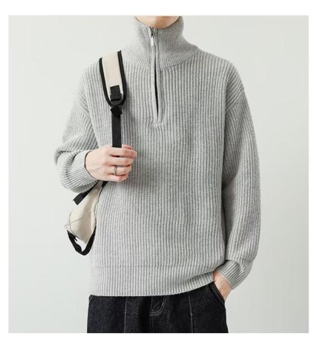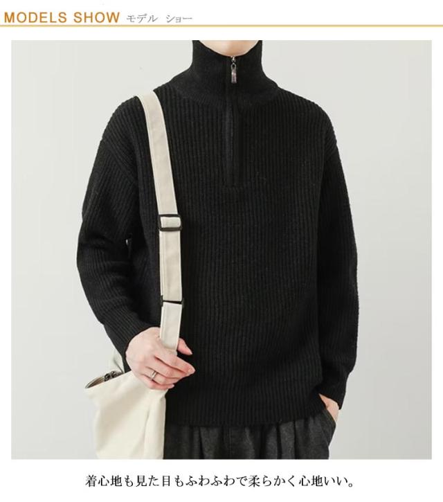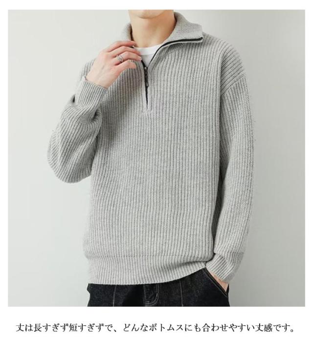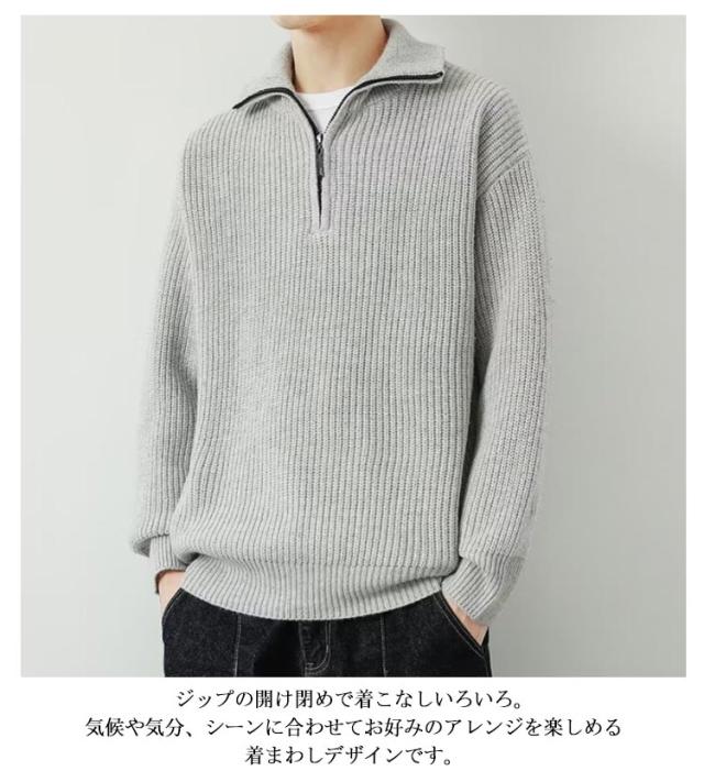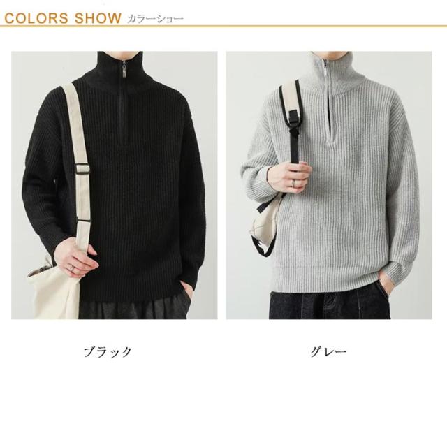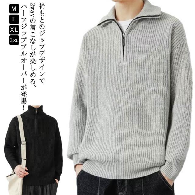リブニット 秋 冬 あったか プルオーバー トップス 2WAY ニットセーター ハーフジップ ハーフジップニット ハイネック ジップアップ トレーナー ゆったり セーター メンズ シンプル カジュアル 防寒 冬服 大きいサイズ 秋服 長袖