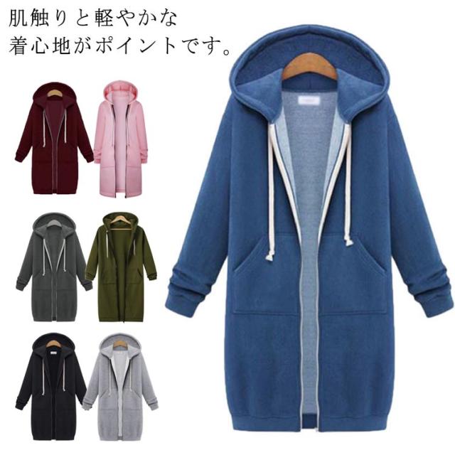 大きいサイズ ロングパーカー トップス レディース スウェットパーカー パーカー 無地 ゆったり シンプル 秋 ライトアウター 冬 マウンテンパーカー 部屋着 春 羽織り 体型カバー カジュアル あったか 無地 長袖