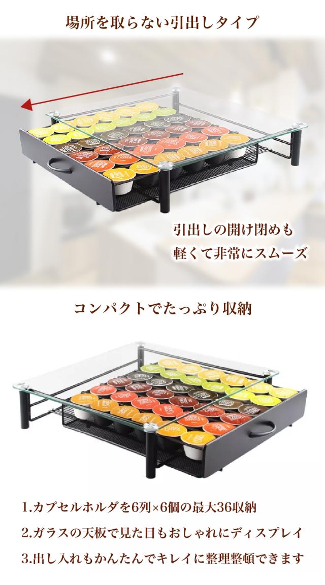 ネスカフェ ドルチェグスト カプセルホルダー 引き出し式 36個用 カプセルケース カプセルストレージ 収納ラック 収納スタンド コーヒーカプセル収納 省スペース 収納 おしゃれ ラック カプセル コーヒー nescafe dolce gusto コーヒーカプセル ドロワー