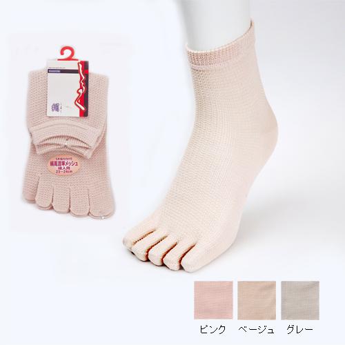 シルクのサラッとした肌触りとメッシュ編みにより、蒸れにくい構造の5本指靴下。