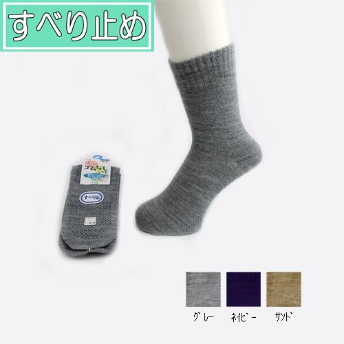 日本製 メンズ 紳士用 男性 ゴム無し すべり止め ソックス 毛混 締めつけない 足首 ゆったり 履きやすい ソックス 靴下 かかと付 快適 あったか 暖かい 温かい クルー 大人 おしゃれ オシャレ 滑らない 滑りにくい 秋 冬 秋冬用 送料無料 24cm~26cm