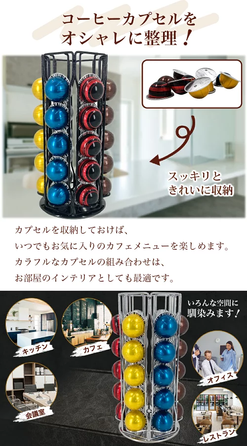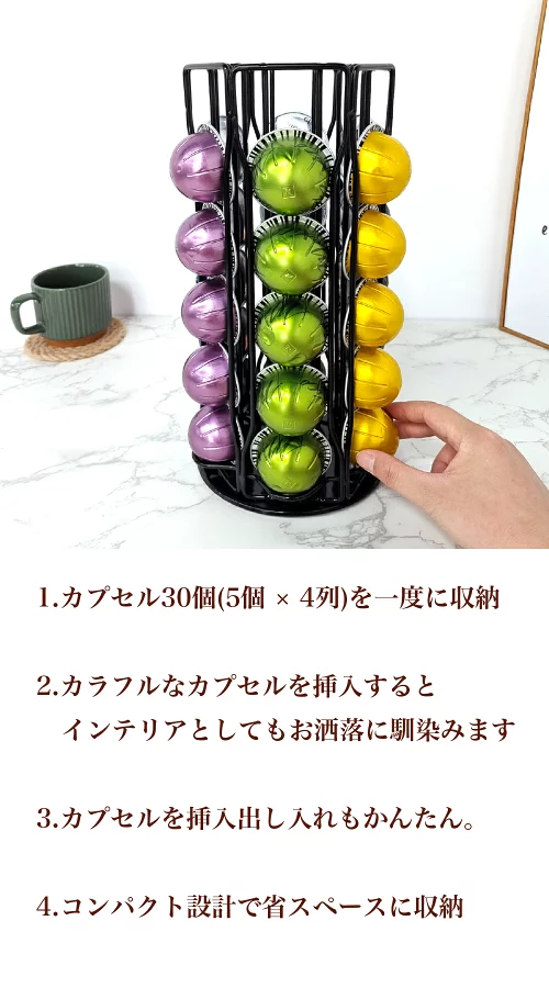 検索用: カプセルコーヒー コーヒーポッドホルダー Nespresso Vertuoline ヴァーチュオ バーチュオ カプセル 対応 ポッド用 カプセルホルダー カルーセル カプセルストレージ エスプレッソポッド オーガナイザー 360°回転 ラック スタンド Vertuo 30カプセル収納