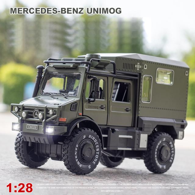 子供シミュレーションプルバック車のおもちゃと互換性 Unimog クライマー 1:28 合金オフロード RV 車モデルの装飾品
