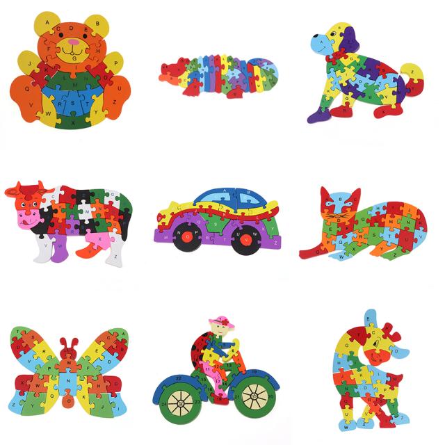 キッズ木製パズルカラフルな漫画動物トラフィック 26 英字啓発教育ジグソーパズルおもちゃ