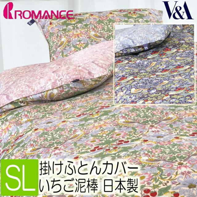 [C]ロマンス小杉 掛け布団カバー シングルロング SL 150×210cm いちご泥棒 日本製 掛けカバー ピンク ブルー 2色から選択 10ヶ所ボタン付きテープ 綿100% 40ツイル 2840-5502-20 2840-5502 Strawberry Thief