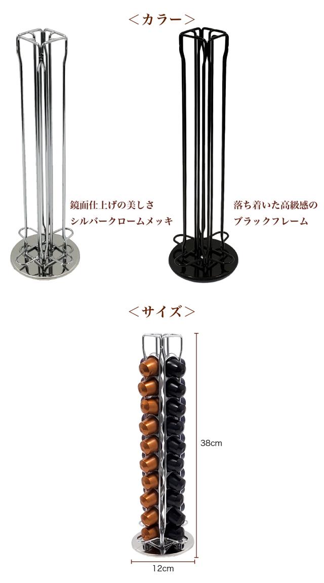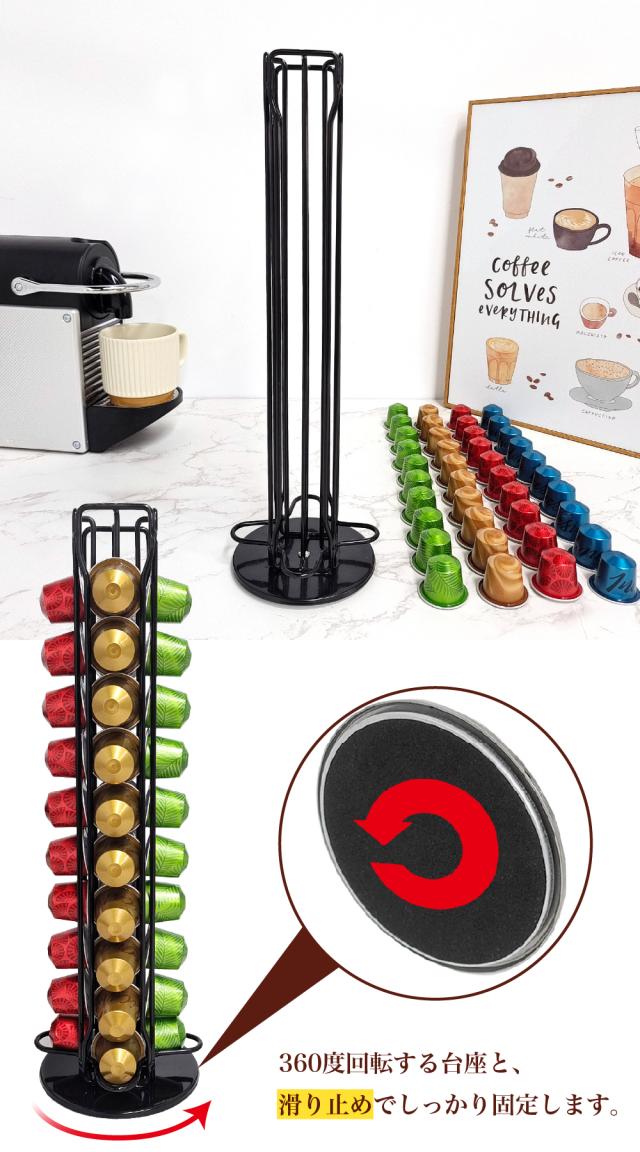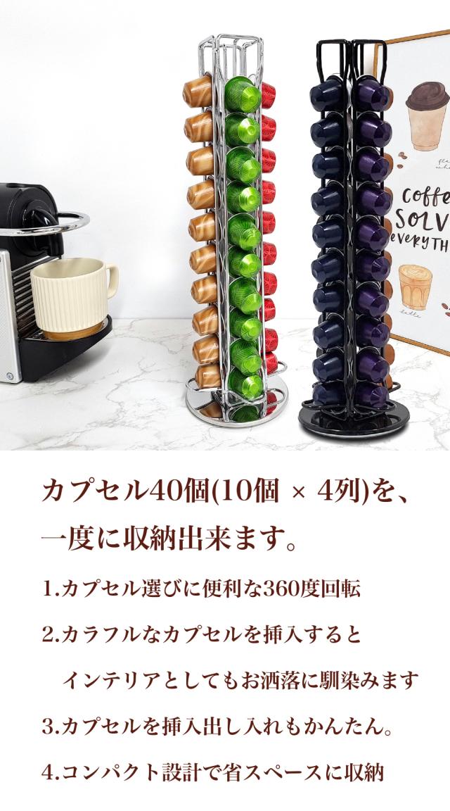 ネスレ ネスプレッソ カプセルホルダー 40個収納 カプセルケース カプセルストレージ ディスプレイスタンド 収納ラック 収納スタンド コーヒーカプセル収納 省スペース 収納 おしゃれ ラック タワー 回転式 カプセル 縦型 コーヒーnespresso coffee シルバー ブラック