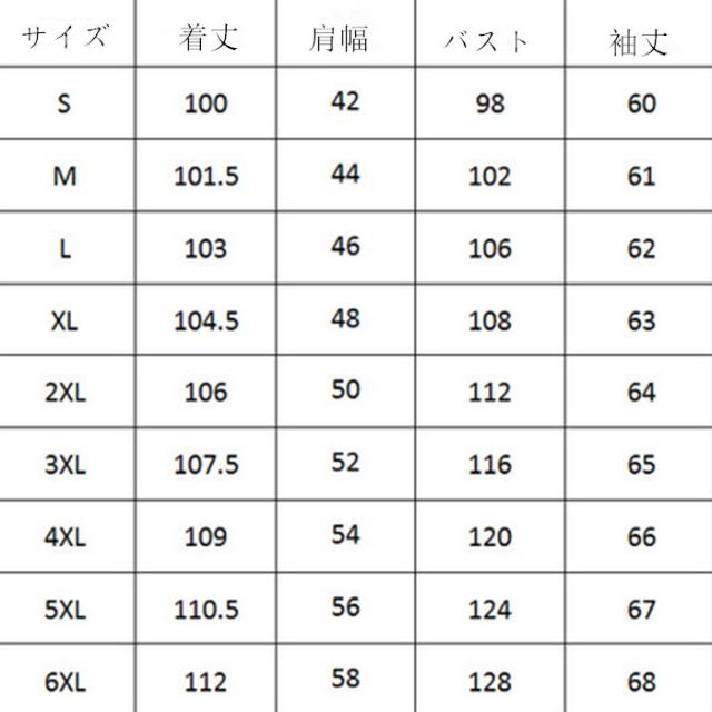サイズ:S M L XL 2XL 3XL 4XL 5XL 6XL