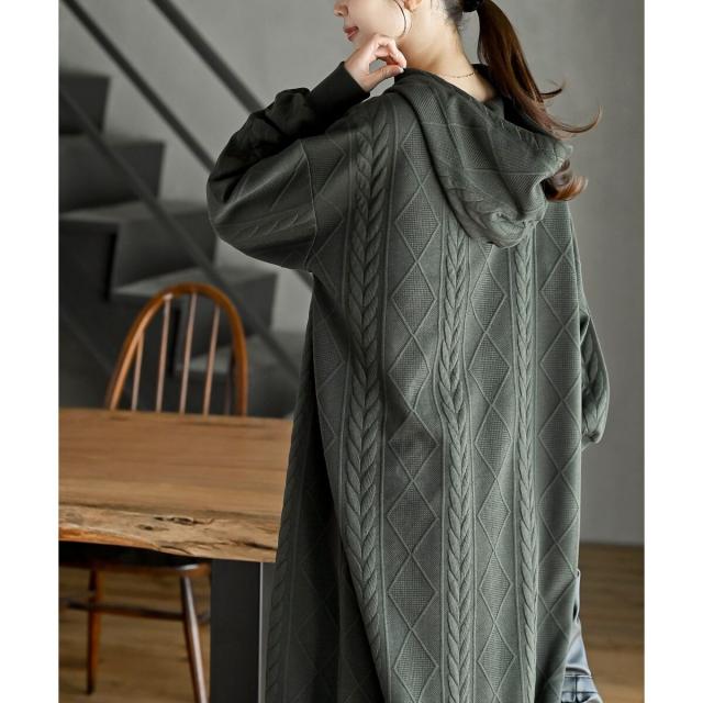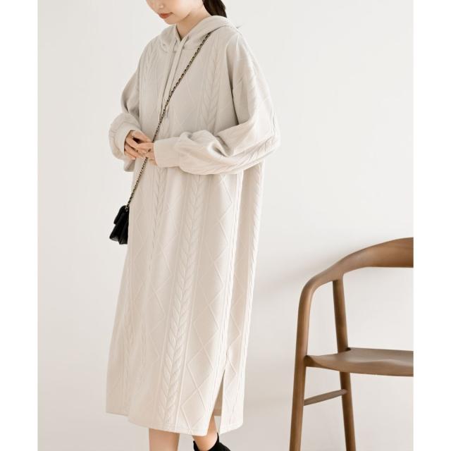 ケーブル柄パーカーワンピース