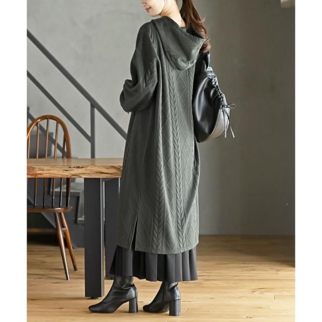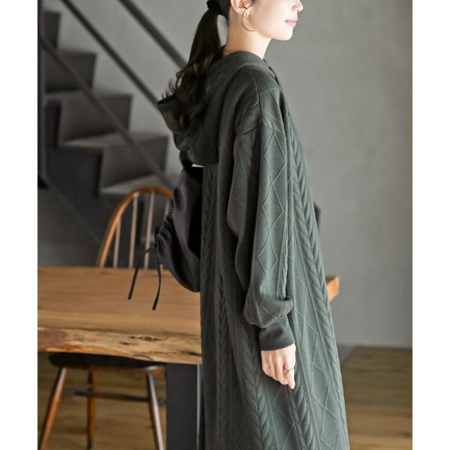 大人可愛いケーブルジャガードのフーディーワンピ