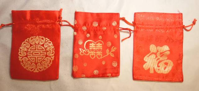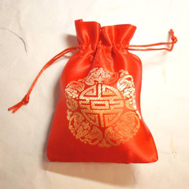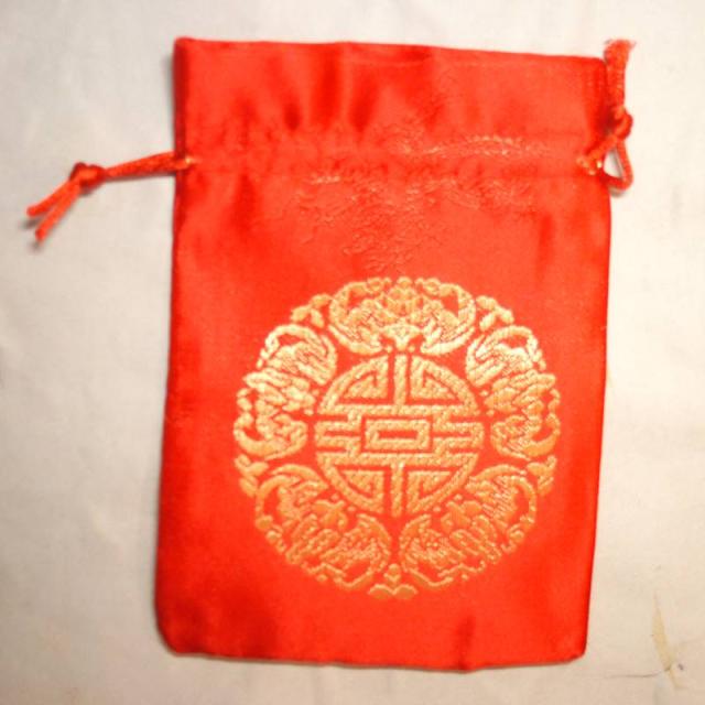 開運縁起 サテン地 四角ポーチ 巾着袋 寿文字 2225K106