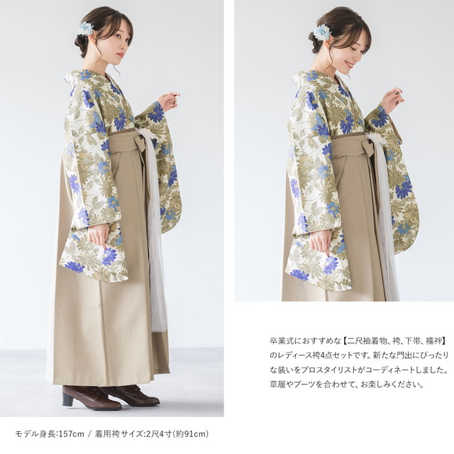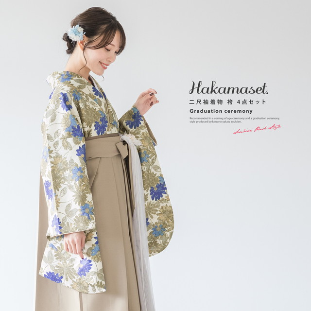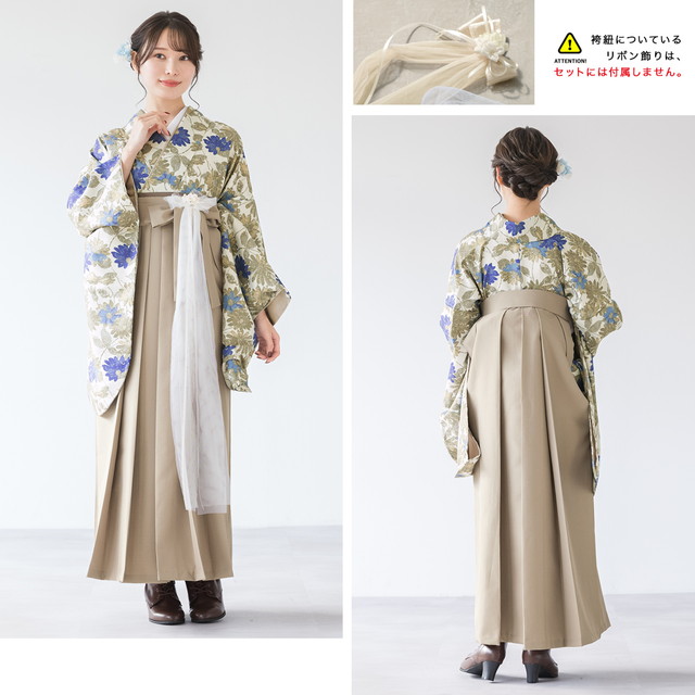 袴セット 卒業式 大学生 小学生 レディース クリーム グリーン系 カーキ ガーベラ 花 フラワー ボタニカル ベージュ 販売 購入 送料無料