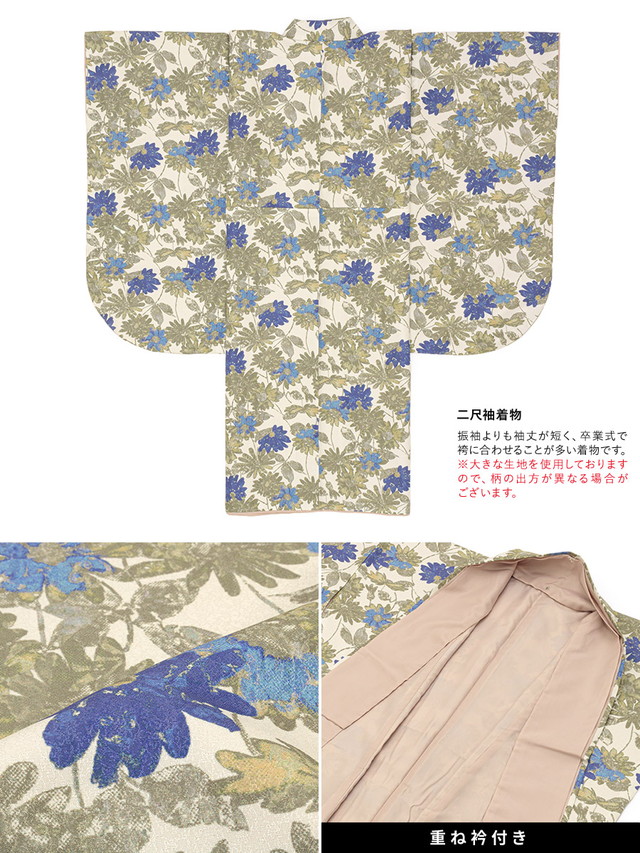 ※着物の柄部分は大きな生地を使用して作られておりますので、色や柄の出方、模様の配置等が画像と異なる場合がございます。