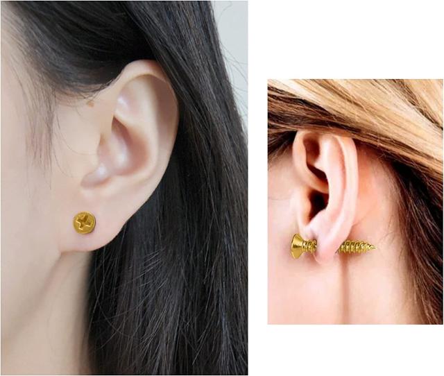 片耳用 ネジ モチーフ ピアス ★ シンプル ジュエリー ネジピー男女兼用 イヤリング ボディピアス 可愛い アクセサリー ローズ金 K23-8